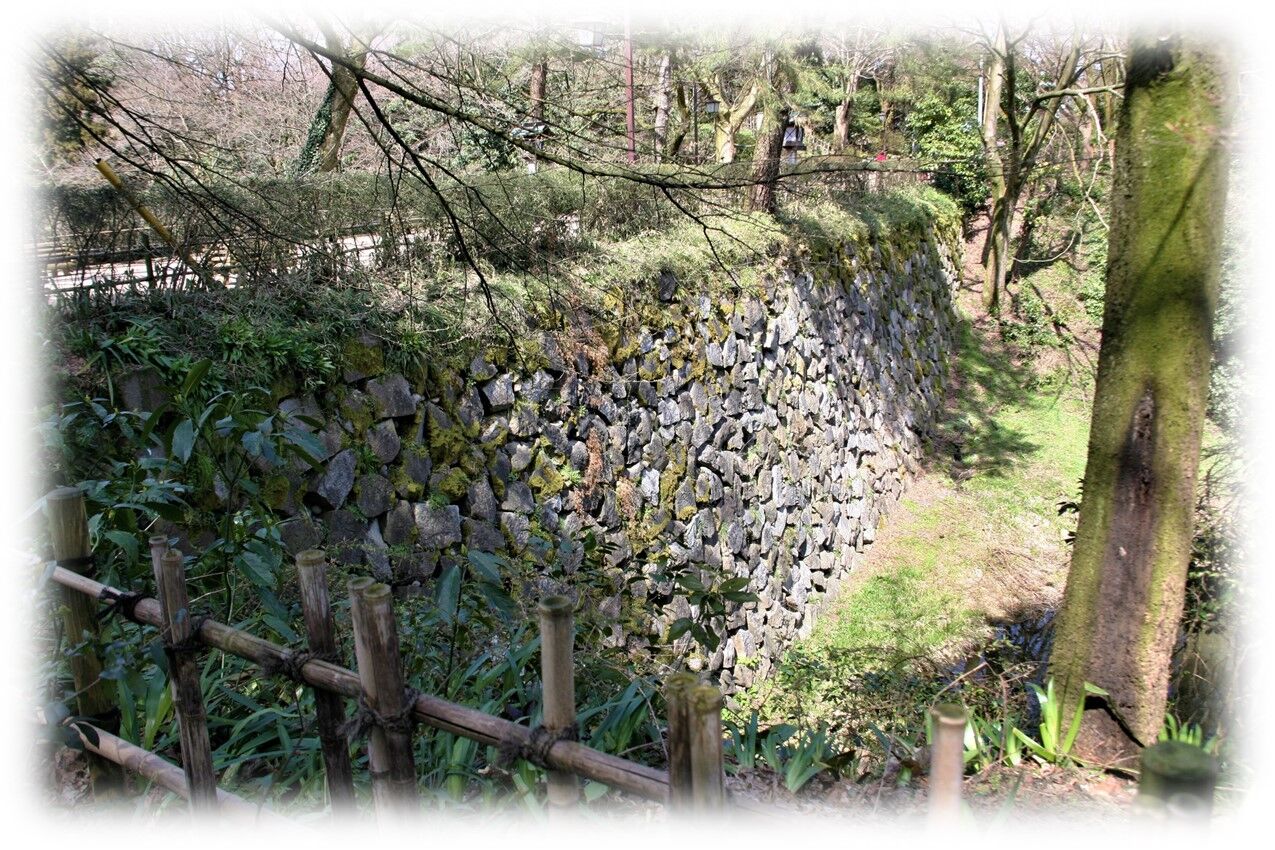 高岡城は1615年廃城となりました、当時の城壁の名残はこの土橋が留めている。