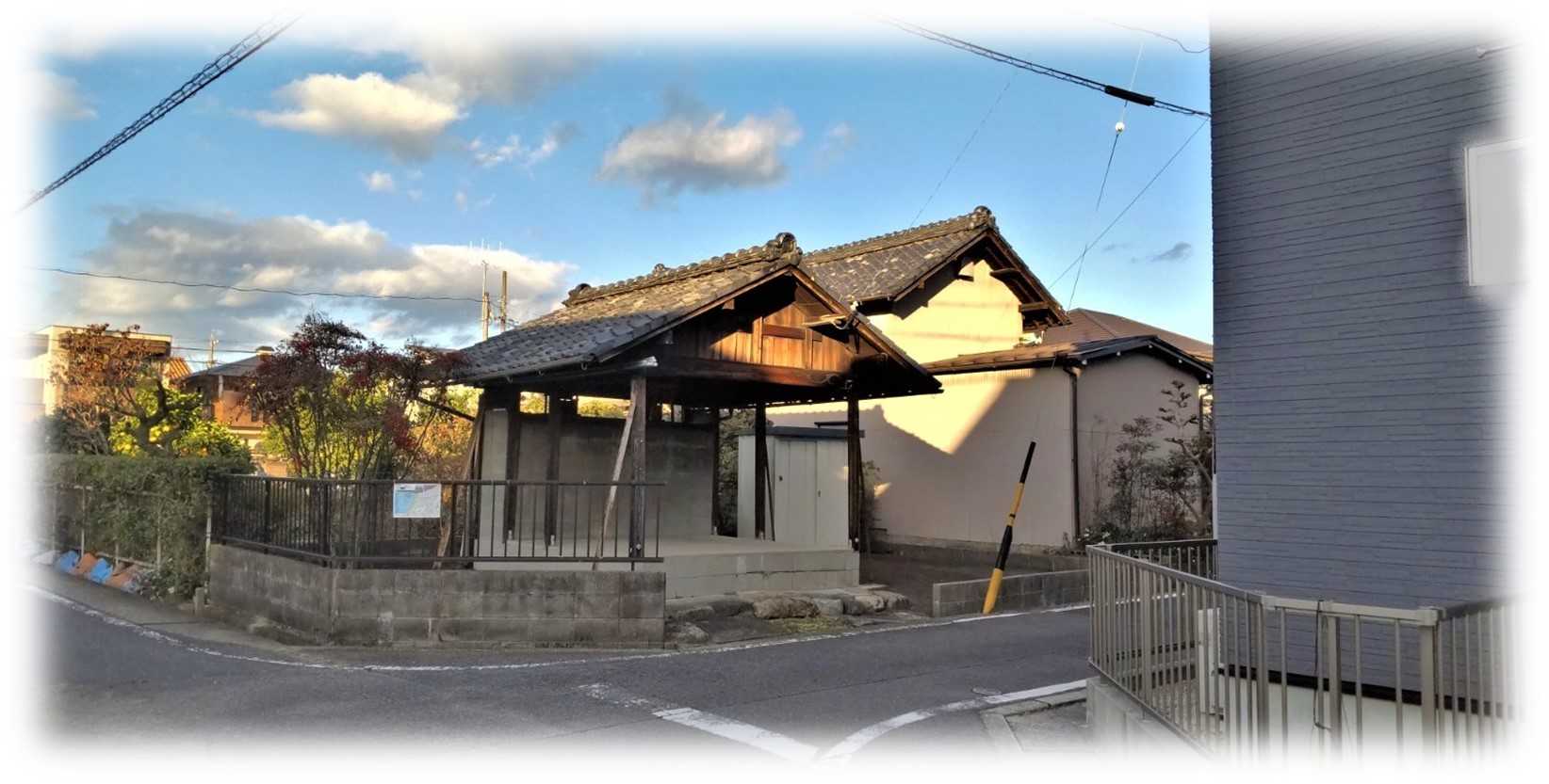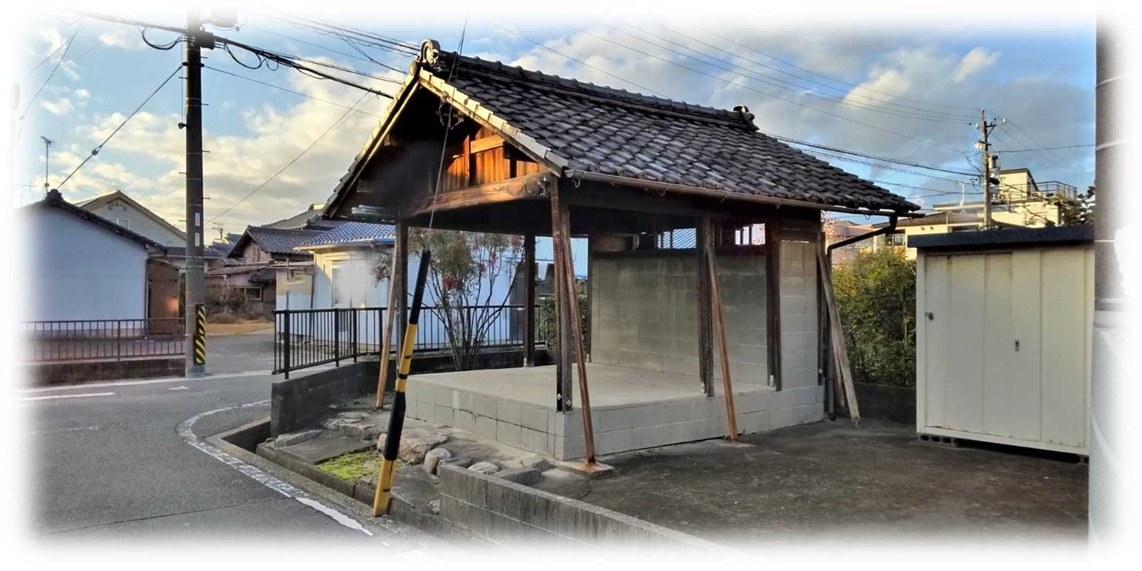 道は堤防で行き止まり、何気に右手に瓦葺の建物が視界に入ってきました。