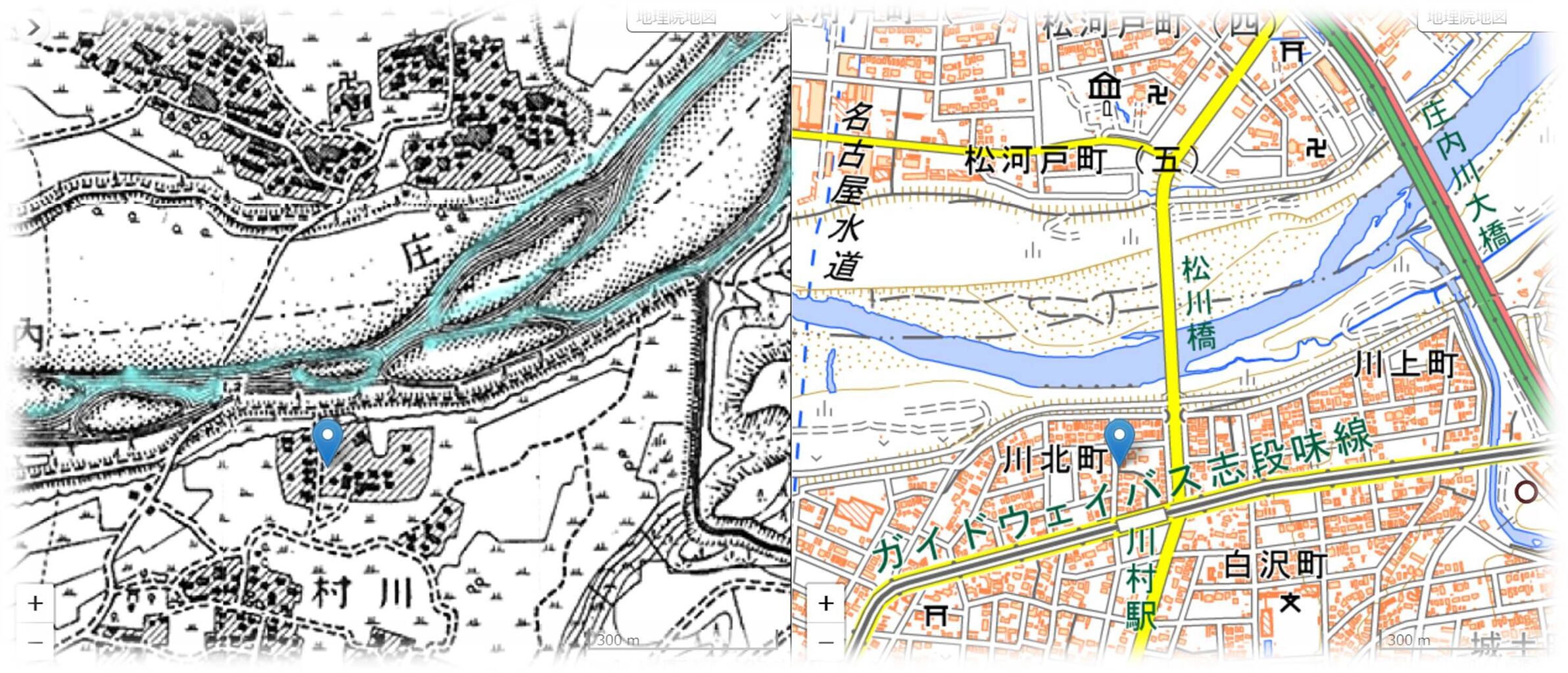当時は川村の中で庄内川に最も近い集落、1978年守山区大字北・大字大森垣外の一部から川北町として成立したようです。