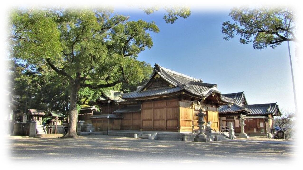 鎌倉時代英比ノ庄(大府市は当時英比ノ庄に属す)の地頭藤田民部は家人の藤次藤左衛門等をこの地に入墾させ、明応三年(1494)六月十九日地頭の邸内に祀られていた菅原道真公を産土神として迎えられたのが当時の創建と云われている。